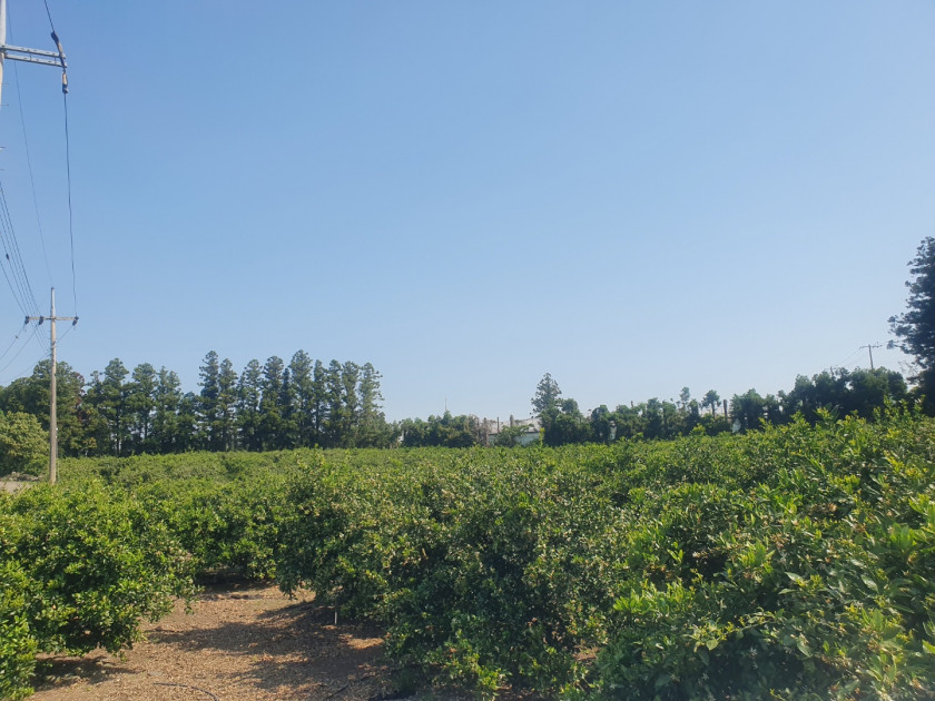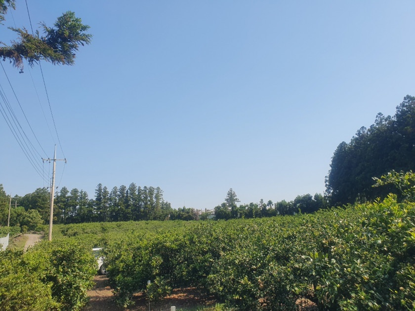 표선면 토산리 마을 인근에 잘 관리되고 있는 귤밭입니다.