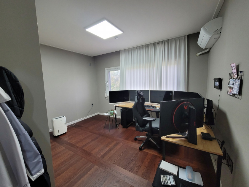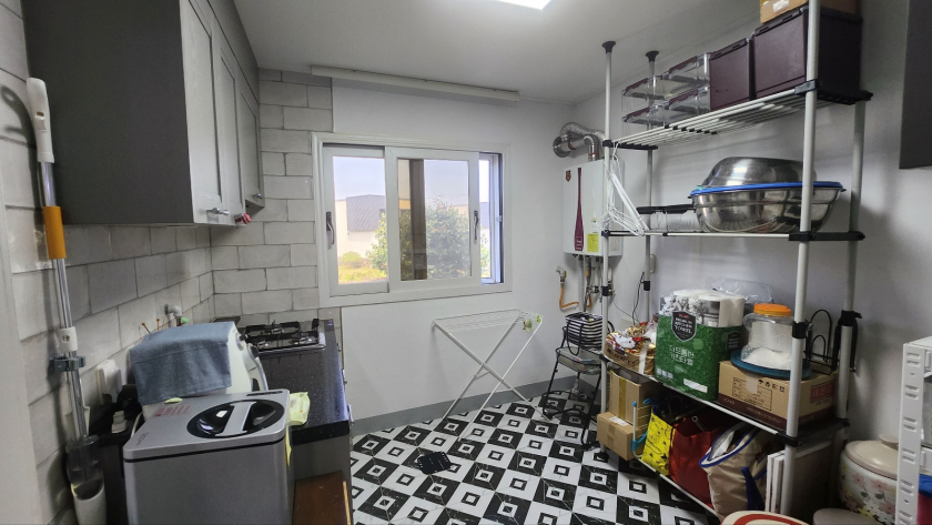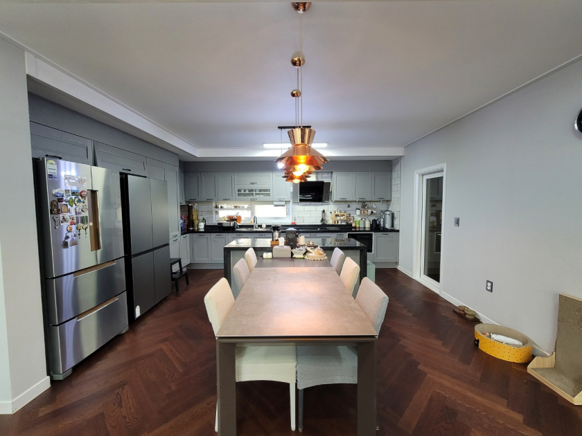 1층엔 넓은 거실과 큰방(드레스룸과 욕실)과 작은 방, 주방과 보조주방이 별도로 구성되어 있으며