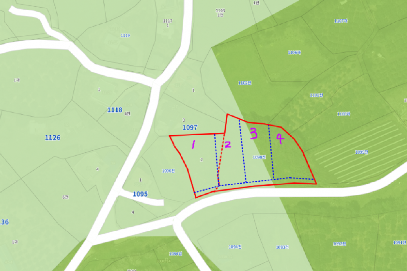 전원주택 4~5채 정도 건축이 가능해 보입니다.